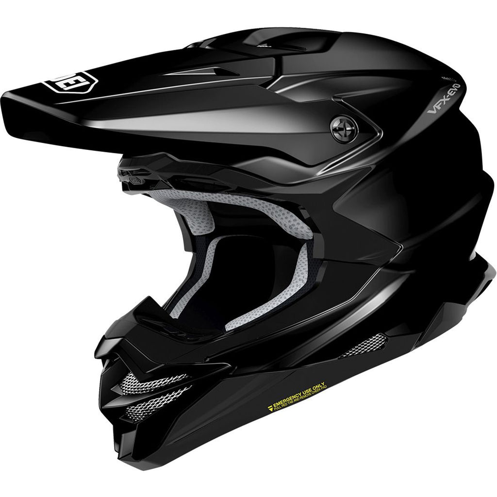 Get ready to rumble in the arena with the Shoei VFX-EVO Helmet, the next iteration of the popular VFX-W. The VFX-EVO's liner incorporates the unique M.E.D.S. (Motion Energy Distribution System), a specially inserted module of the EPS liner designed to absorb sudden impacts by reducing rotational acceleration to the head in the event of a crash. Shoei's in-house testing showed rotational energy to be reduced by 15% In comparison to that of the VFX-W off-road helmet. The shell is constructed with high performance AIM+ (Advanced Integrated Matrix Plus Multi-Fiber), a combination of fiberglass and organic fibers. The result is a rigid, ultra-lightweight, yet elastic structure.